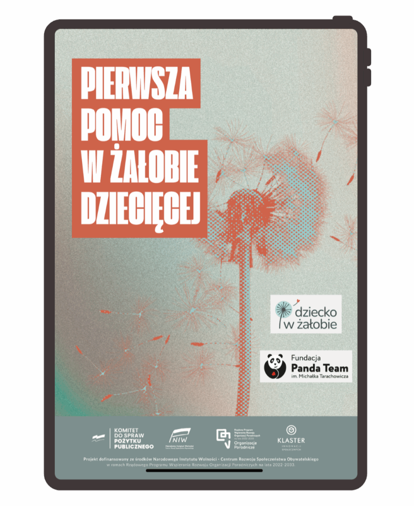 Broszura „Pierwsza pomoc w żałobie dziecięcej” to praktyczny przewodnik dla rodziców, nauczycieli i wszystkich, którzy chcą mądrze wspierać dziecko po stracie. Znajdziesz w niej rzetelną wiedzę, wskazówki specjalistów oraz ciepłe, osadzone w doświadczeniu przykłady. Pobierz materiały i dowiedz się, jak pomóc dziecku krok po kroku.